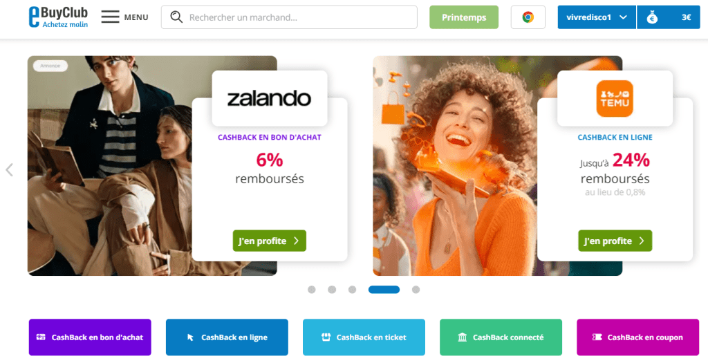 Mon coup de cœur en matière de cashback reste sans aucun doute eBuyClub. Au-delà de ses nombreux sites partenaires, la plateforme fait la différence avec son système de remboursement en magasin. Il suffit de scanner son ticket de caisse via l’application dédiée pour toucher un pourcentage de cashback sur ses achats. C’est une solution idéale pour économiser sur des marques précises, que l’on fasse son shopping en ligne ou directement en rayon.
