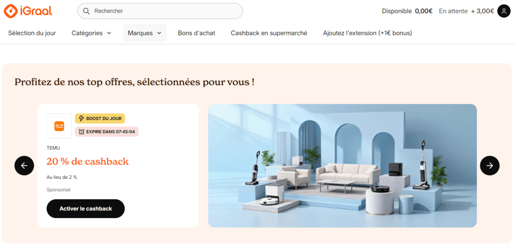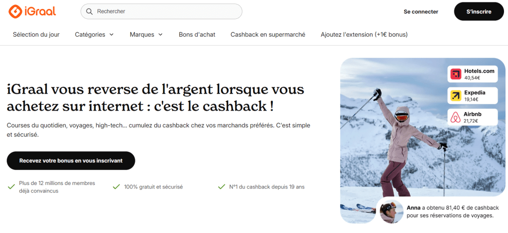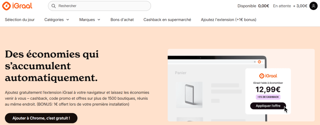On ne le présente plus à part pour ceux qui n’ont jamais entendu parler de cashback. iGraal est l’une des plus grandes références dans le domaine. Idéal pour faire des économies, le site propose plusieurs outils pour ne louper aucune promotion (une extension pour votre navigateur internet ainsi qu’une application pour votre téléphone). En utilisant iGraal comme intermédiaire pour vos achats, obtenez des rétributions intéressantes. Vous pouvez économiser sur un tas de sites, de marques et dans des domaines différents.