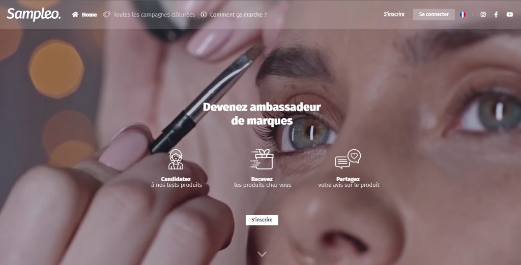 Sur sampleo.com, vous pouvez candidater pour tester gratuitement différents produits. Une fois inscrit sur le site, vous trouverez sur la page d’accueil les campagnes en cours auxquelles vous pouvez proposer votre candidature. Si vous êtes sélectionné, vous recevrez un mail vous indiquant les démarches pour recevoir le produit. Après avoir réceptionné votre colis, on vous demandera par exemple d’écrire un avis complet du produit et de le partager.