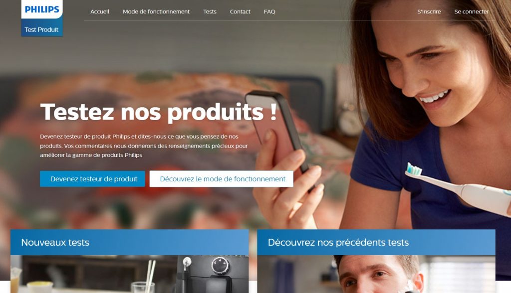 La marque Philips a un espace dédié aux tests de leurs produits. Une fois votre inscription effectuée, vous pouvez postuler à différentes campagnes en cours. Après avoir déposé votre candidature, le refus ou l’approbation vous sera communiqué par email.
