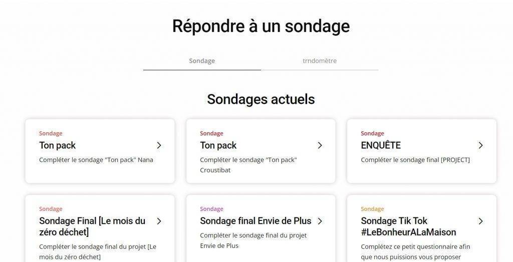 Pour avoir un profil intéressant, n’hésitez pas à répondre vigoureusement aux nombreux sondages et enquêtes. C’est ainsi que vous pourrez décrocher des produits gratuits. Pour vous inscrire en tant que testeur chez trdn.com, veuillez cliquer sur ce lien : trnd.com/fr.
