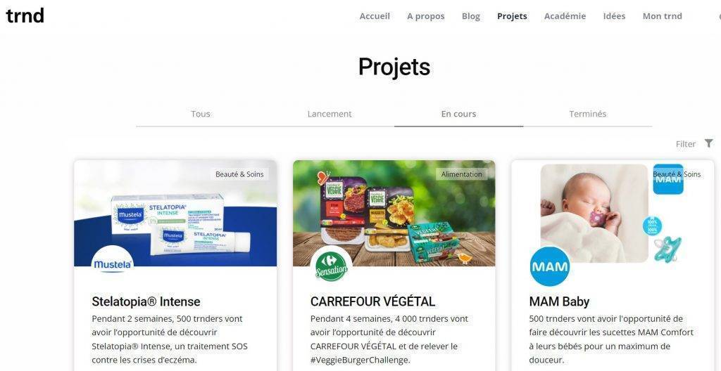 Rejoignez la communauté Trnd pour participer à de nombreux tests de produits gratuits. Pour avoir la chance d’être choisi, il faut impérativement remplir votre profil au maximum en répondant par exemple aux nombreux questionnaires (les trndomètres). En renseignant vos centres d’intérêt et vos habitudes quotidiennes, vous aurez un portrait cible susceptible d’intéresser les marques.